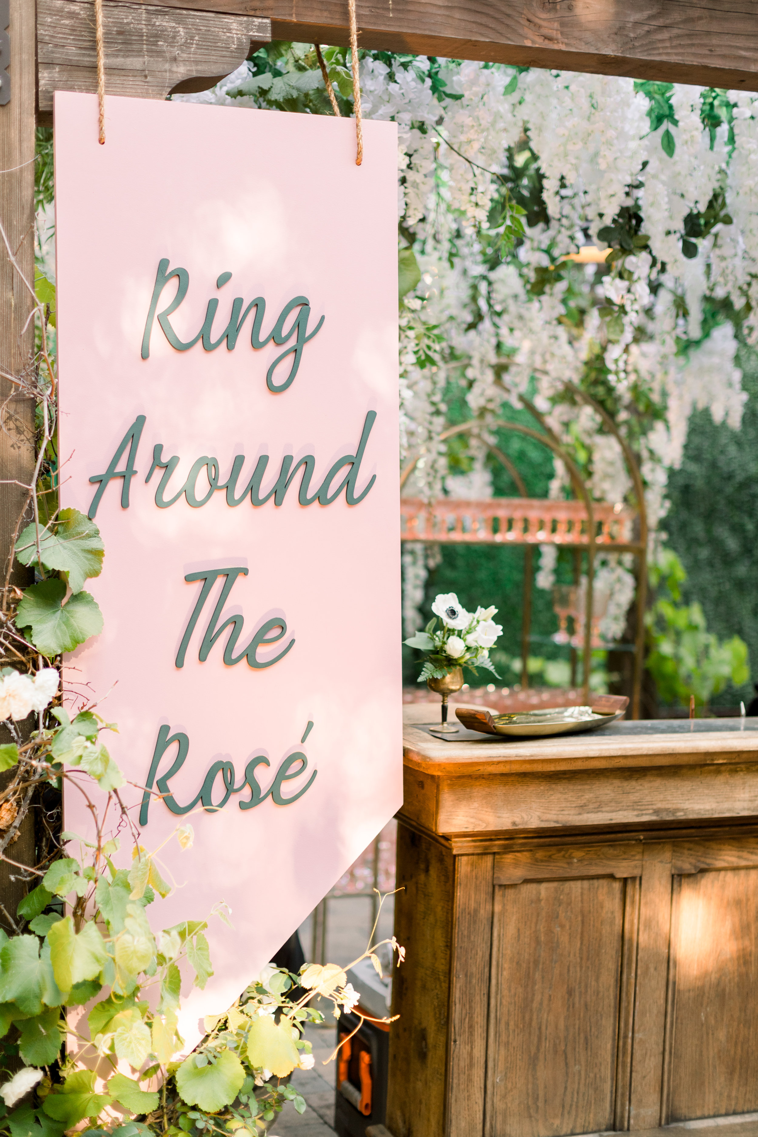 The gorgeous Ring Around the Rosé bar served guests either a still or sparkling cocktail. It was a tough decision between a “Stop and Smell the Rosé” (Rosé, Aperol, St. Germain, Chambord, Soda Water) or “Rosé Sil Vous Plait” (Rosé Sangria). I was a huge fan of the “Stop and Smell the Rosé”. We created these drink “buttons” for each glass and I’m 100% obsessed with them. They were so cute and so different from our popular stir sticks.